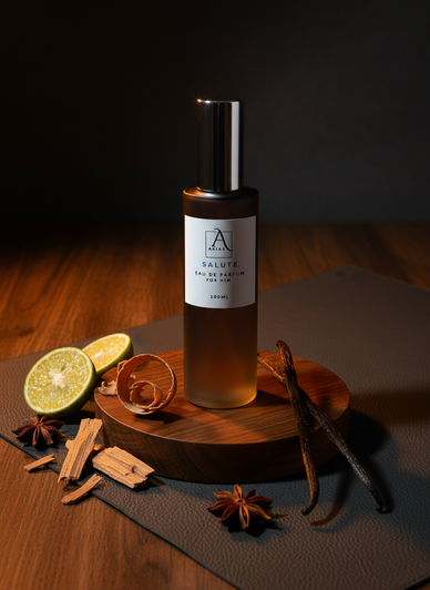 SALUTE captures the essence of timeless masculine elegance with a sophisticated oriental composition. Opening with bright bergamot and zesty lemon softened by delicate lavender, the fragrance unfolds into a complex heart of star anise and cedarwood that commands attention. The luxurious base of musk, amber, tonka bean, and vanilla creates a warm, sensual finish that lingers throughout the day. Perfect for the man who appreciates depth, refinement, and an unforgettable signature scent.